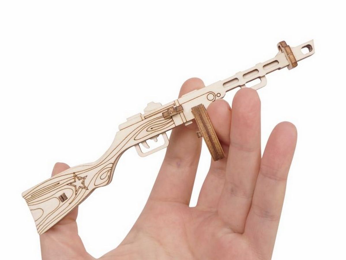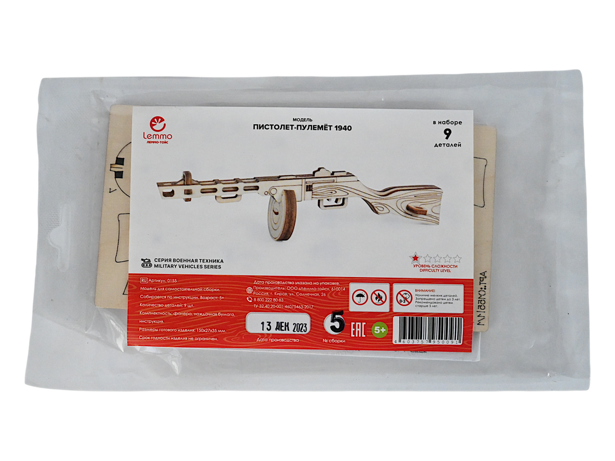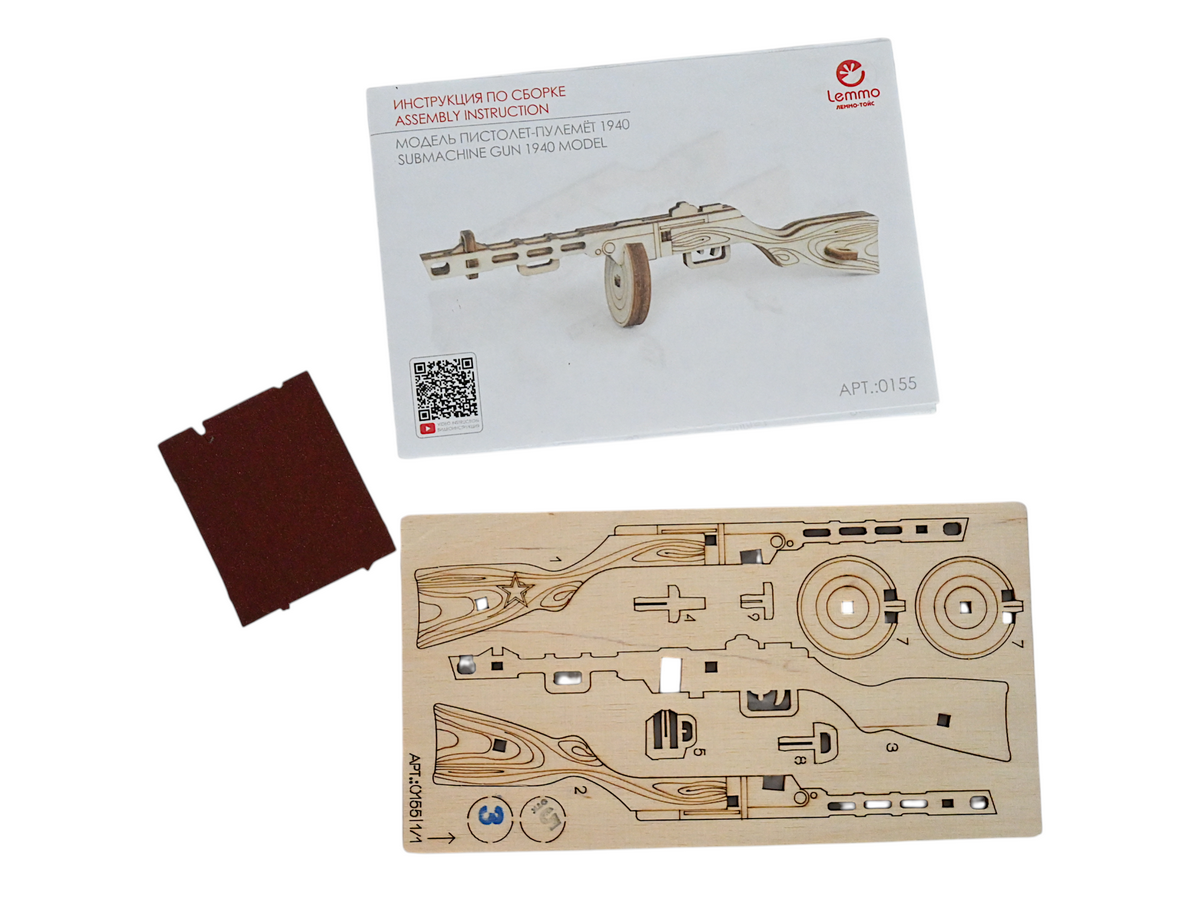 Деревянный 3D конструктор Lemmo Пистолет-пулемёт 1940. При желании можно раскрасить акриловыми красками.Требуется соблюдать РРЦ