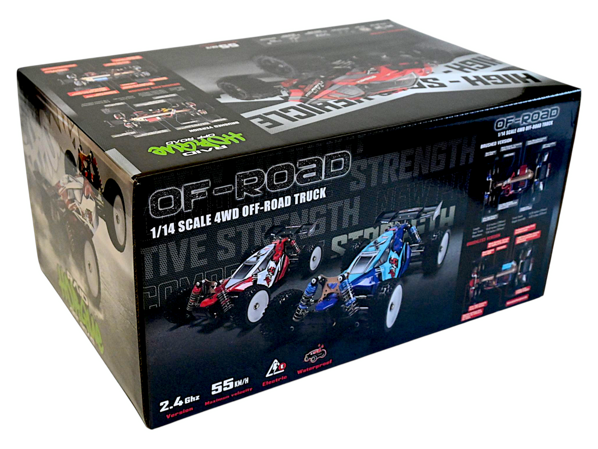Легендарный и обновленный Off-road Buggy в масштабе 1/14 и ударопрочными металлическими компонентами! Новое металлическое шасси. Износостойкие резиновые шины с отличным протектором. Новые маслонаполненные амортизаторы GTR c алюминиевым корпусом.Мощный водонепроницаемый бесколлекторный регулятор с системой охлаждения. Бесколлекторный мотор 2848. Аккумулятор Li-po 7.4V 1800mAh.