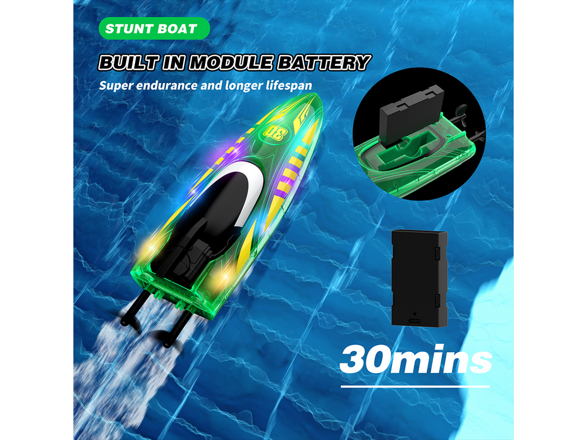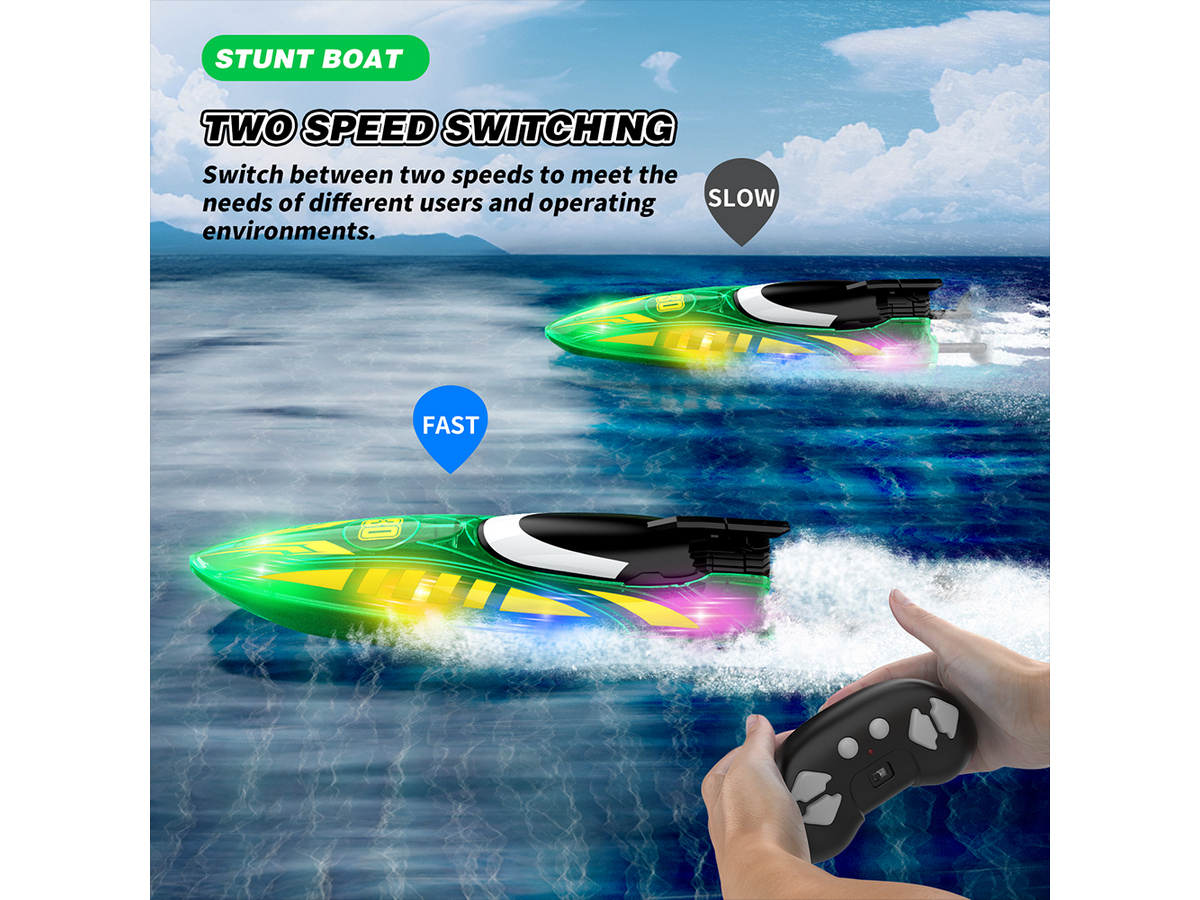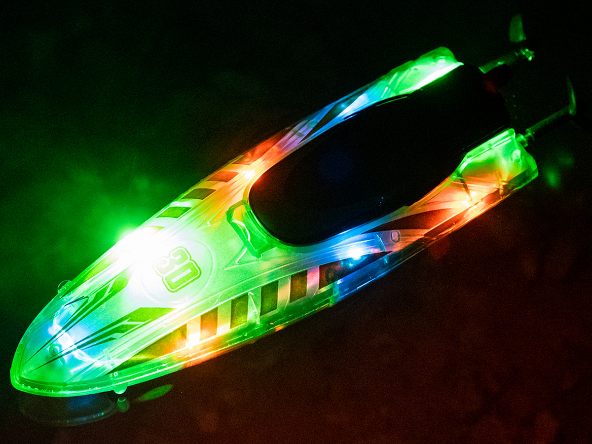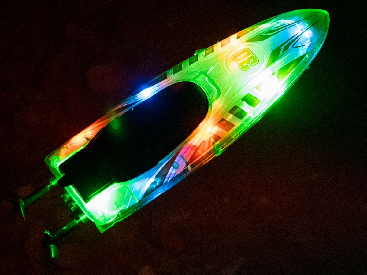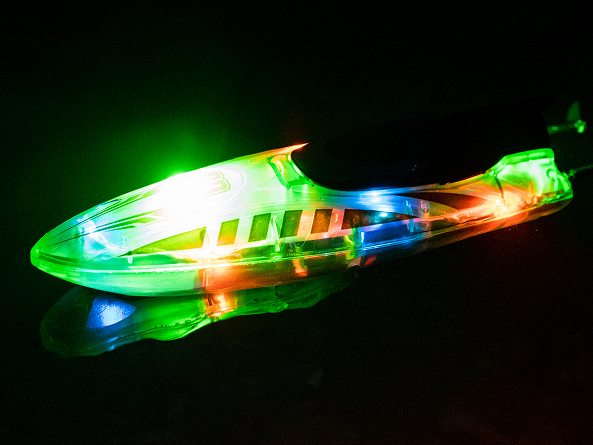 Световые эффекты: катер оснащен яркой LED-подсветкой с тремя режимами (дыхание, мигание и постоянный свет), что делает его заметным при ночных заплывах.