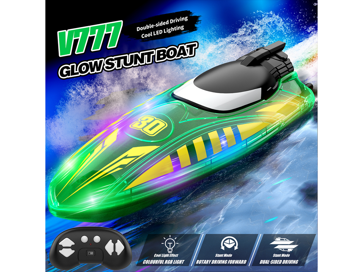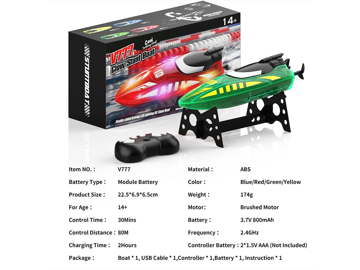 Flytec V777 Blue — это компактный радиоуправляемый катер-трюкач, предназначенный для скоростных заплывов и выполнения маневров в бассейнах и озерах. Основной особенностью модели является возможность двустороннего движения и вращения на 360 градусов, что позволяет катеру продолжать движение даже после переворота.