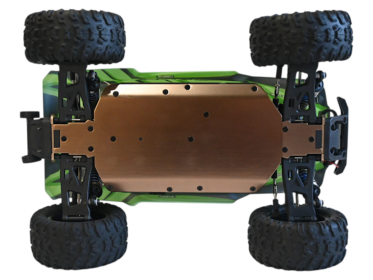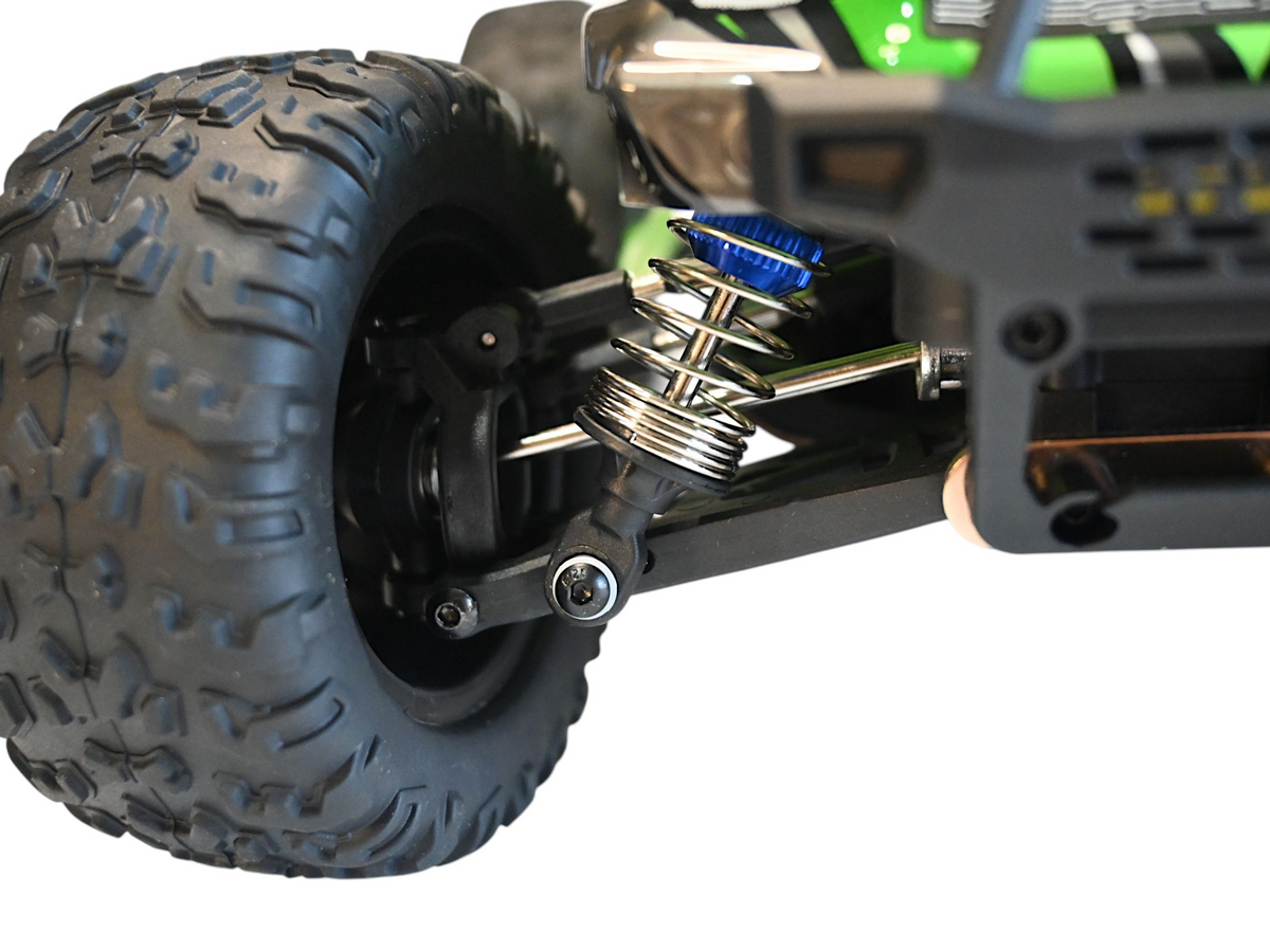 Легендарный и обновленный Monster Truck в большем масштабе и ударопрочными металлическими компонентами! Новое металлическое шасси. Светодиодные фары. Новые маслонаполненные амортизаторы GTR. Мощный водонепроницаемый бесколлекторный регулятор с системой охлаждения. Бесколлекторный мотор 2848. Аккумулятор Li-po 7.4V 1800mAh. Wheel bar.Персональная система скидок при больших заказах