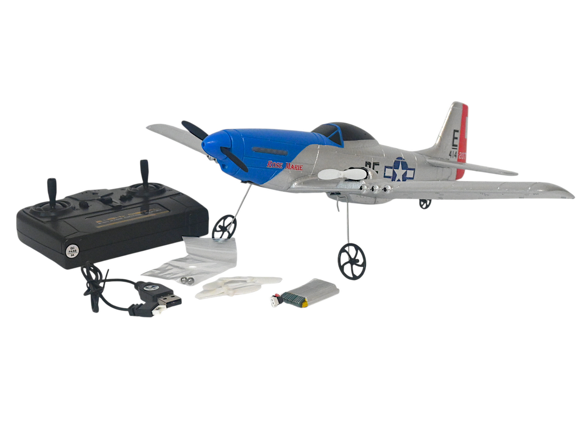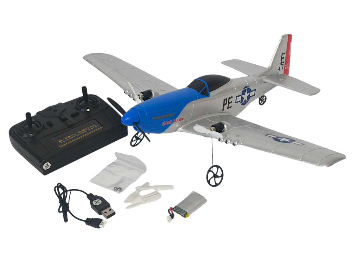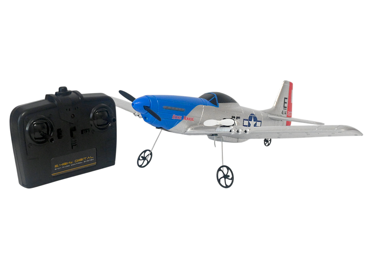 Радиоуправляемый самолет Volantex RC Mustang 400мм (синий) 2.4G 2ch LiPo RTF with Gyro